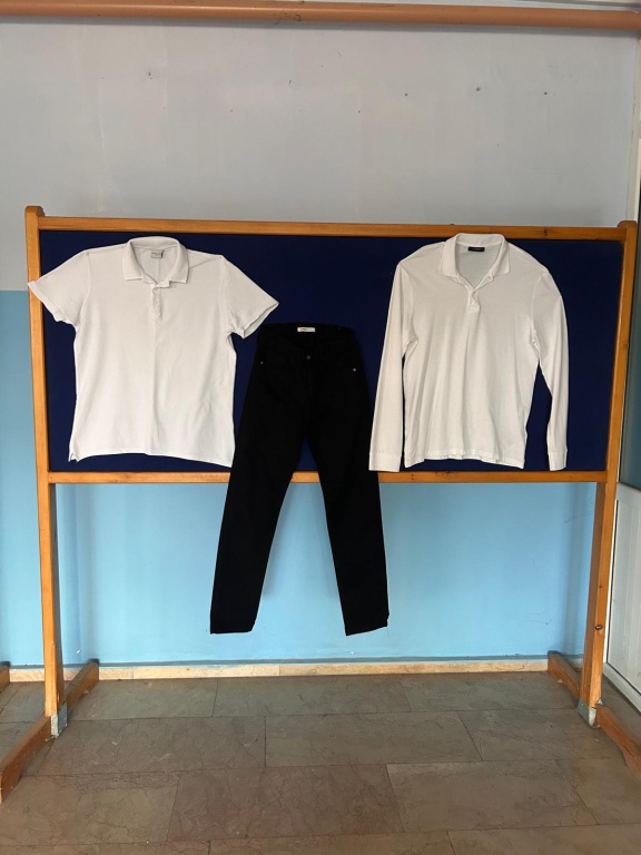 Kız ve erkek öğrencilerimizde beyaz kısa kollu ve uzun kollu (kol ucu manşetli) polo yaka pamuklu tişört (armasız, yazısız) ve siyah kanvas, esnek pantolon.